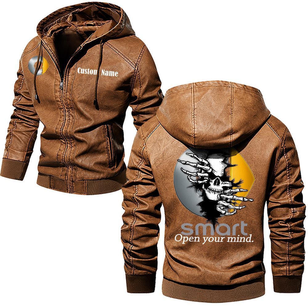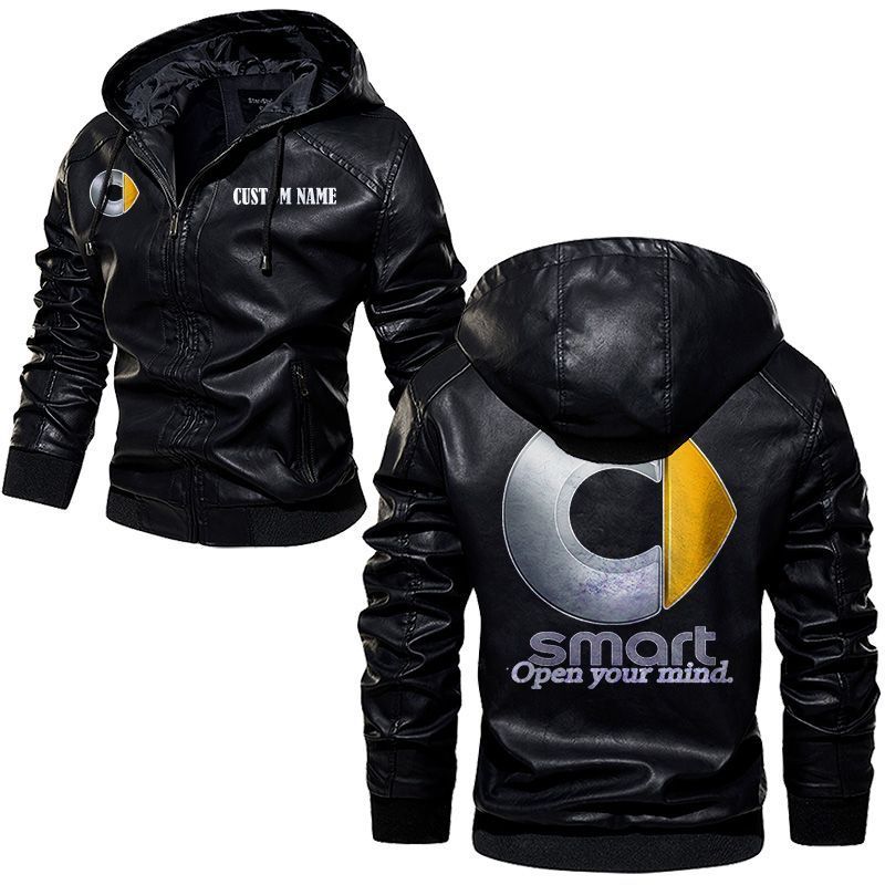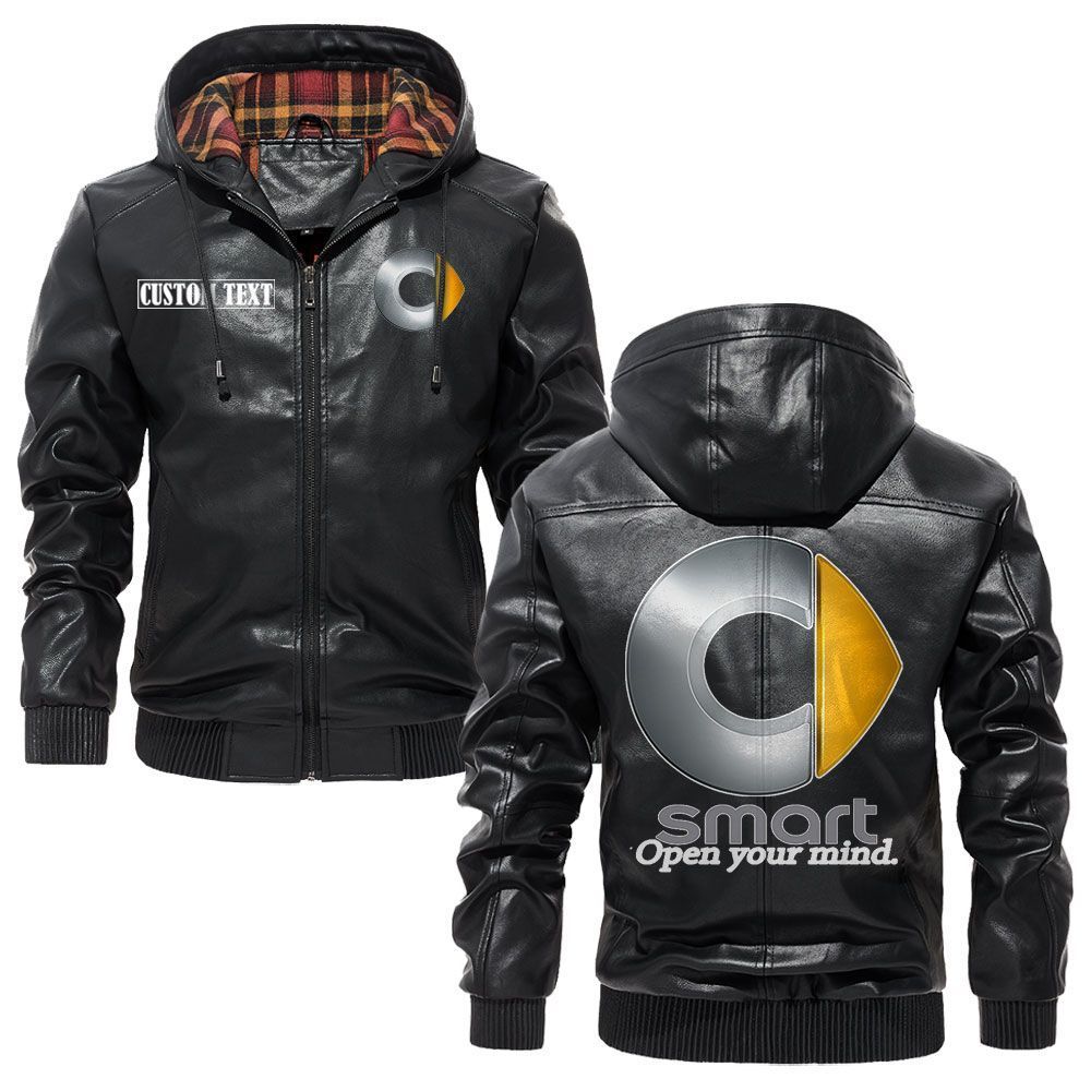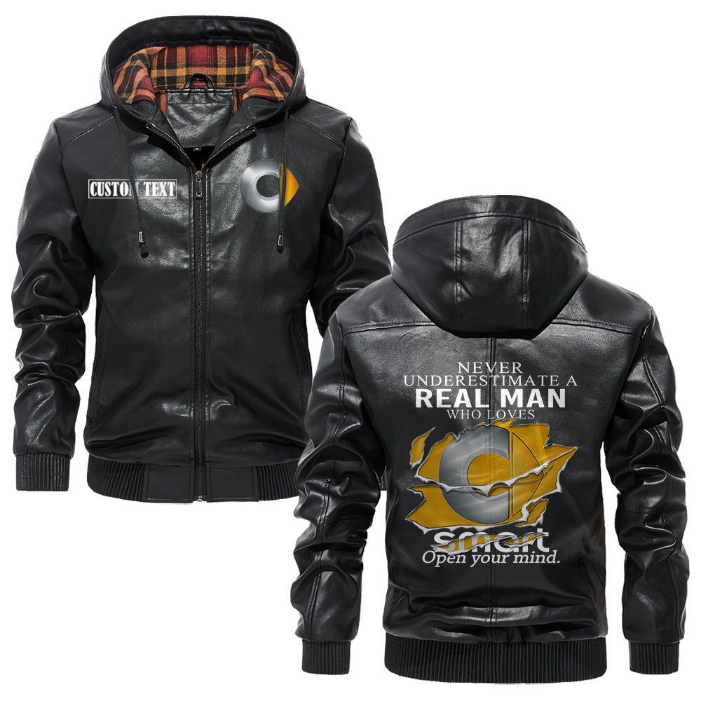 Smart Logo Custom Name Leather Hoodie Jacket A Real Man Who Loves