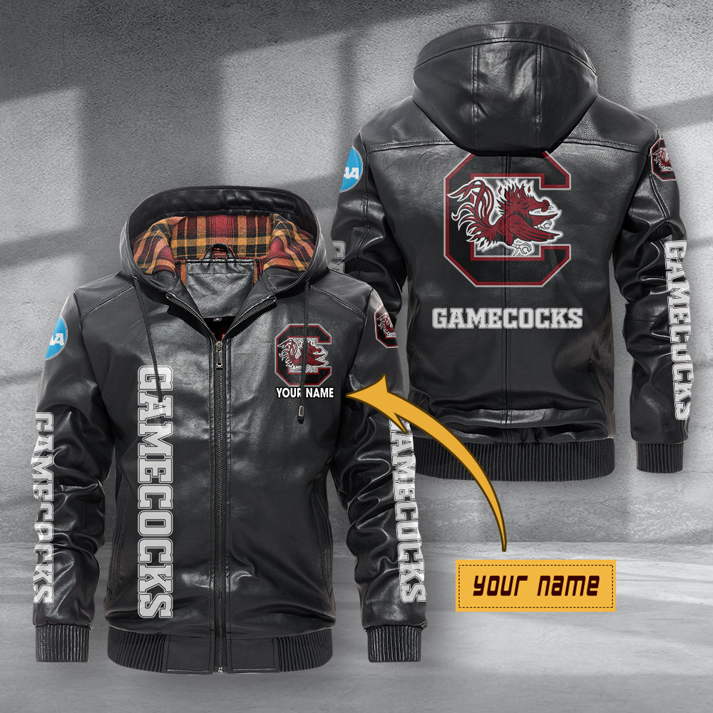 South Carolina Gamecocks Leather Hoodie Jacket Football Leather Jacket