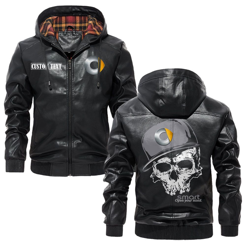 Smart Logo Custom Name Leather Hoodie Jacket Warm Outerwear with Skull Design