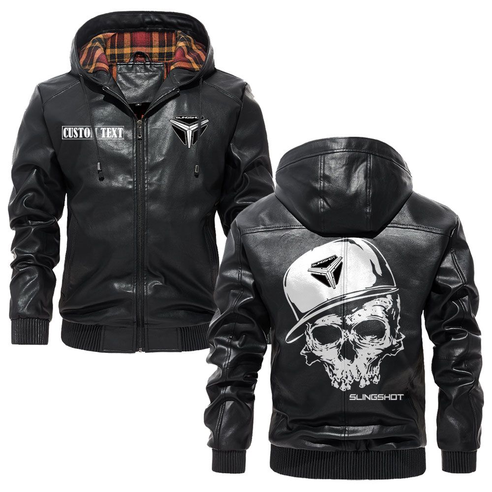 Slingshort Logo Custom Name Leather Hoodie Jacket Warm Outerwear with Skull Design