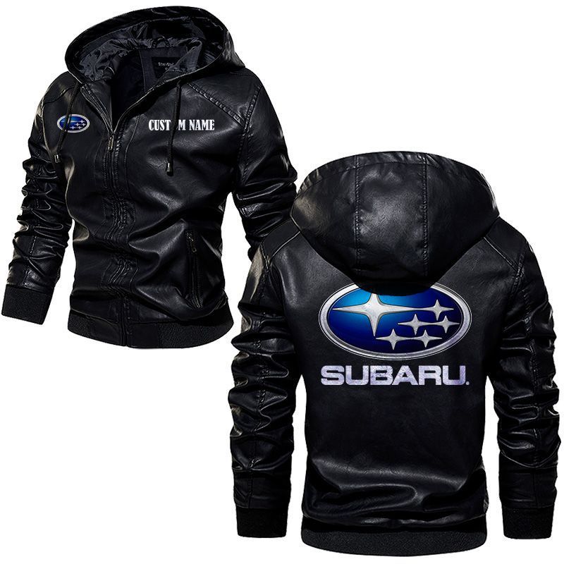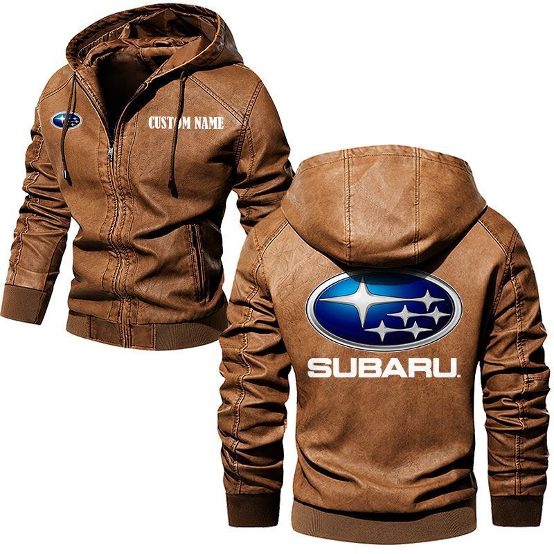 Subaru Logo Custom Name Leather Hoodie Jacket Comfortable Personalized Outerwear