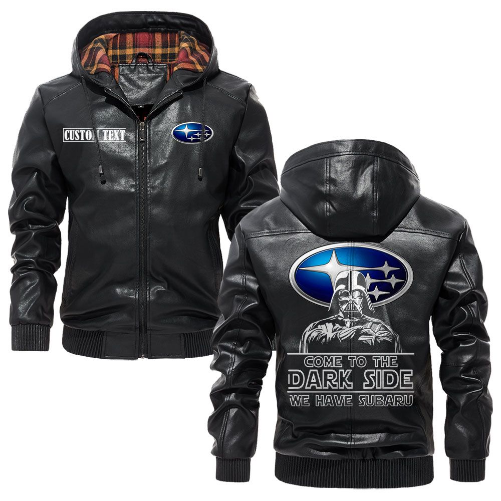 Subaru Logo Custom Name Leather Hoodie Jacket Warm Outerwear with Star Wars Theme