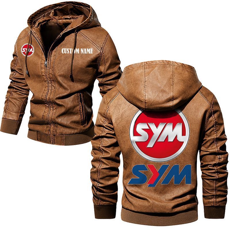 SYM Motors Logo Custom Name Leather Hoodie Jacket Comfortable Personalized Outerwear