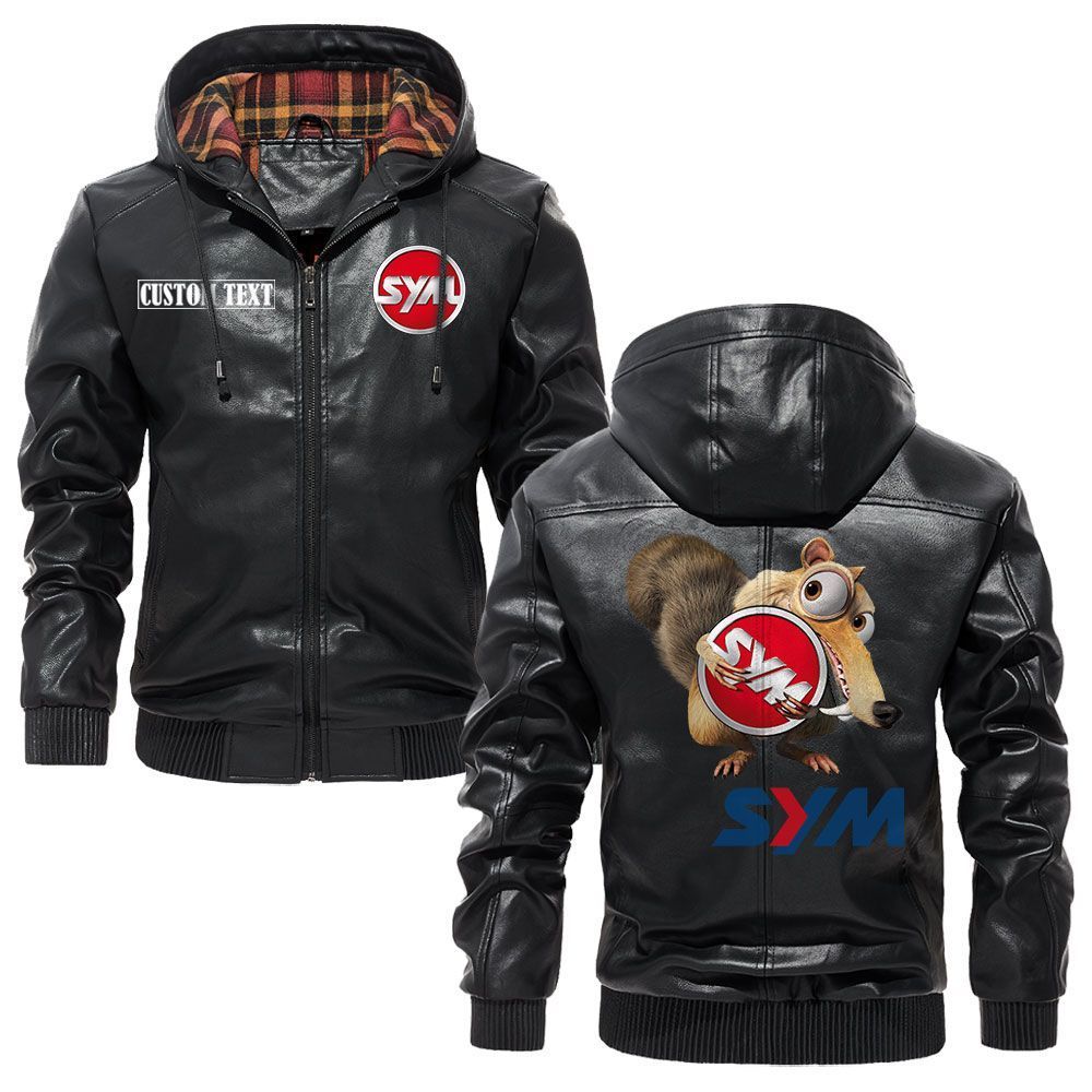 SYM Motors Logo Custom Name Leather Hoodie Jacket Warm Outerwear with Ice Age Theme