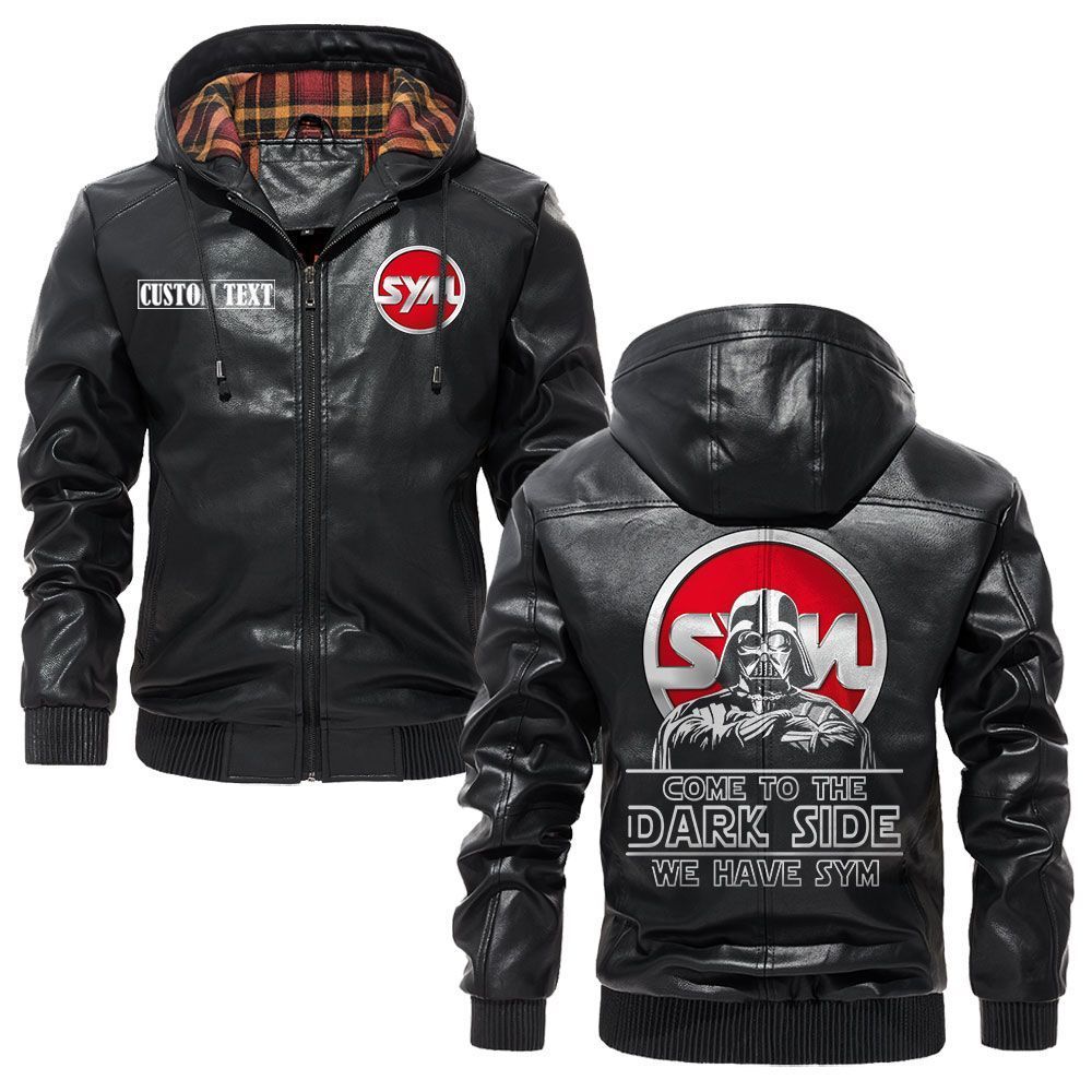 SYM Motors Logo Custom Name Leather Hoodie Jacket Warm Outerwear with Star Wars Theme