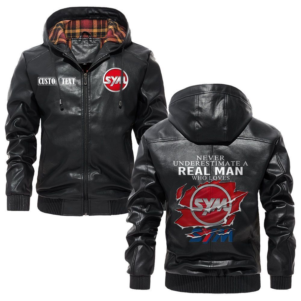SYM Motors Logo Custom Name Leather Hoodie Jacket A Real Man Who Loves