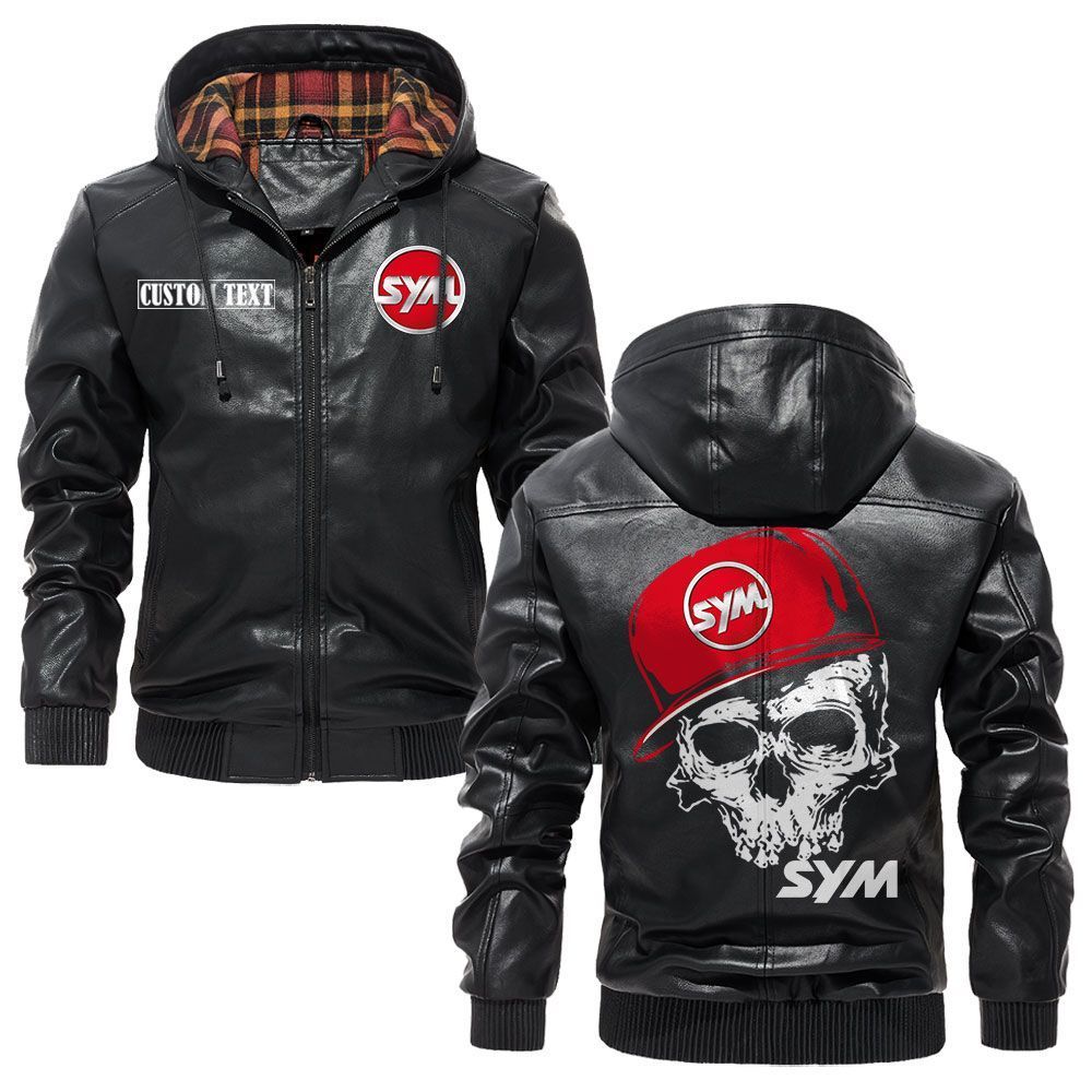 SYM Motors Logo Custom Name Leather Hoodie Jacket Warm Outerwear with Skull Design