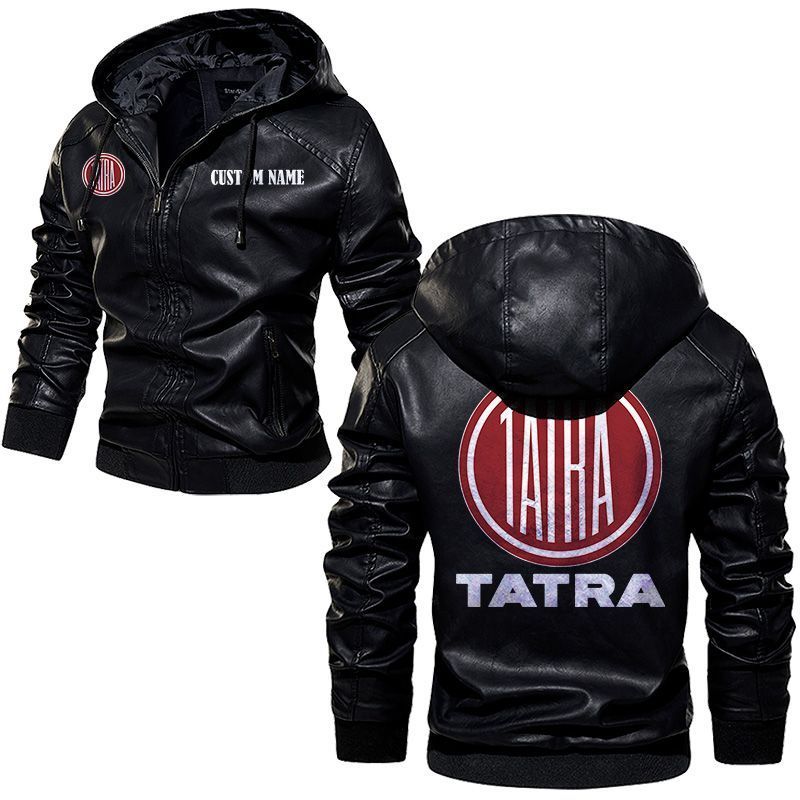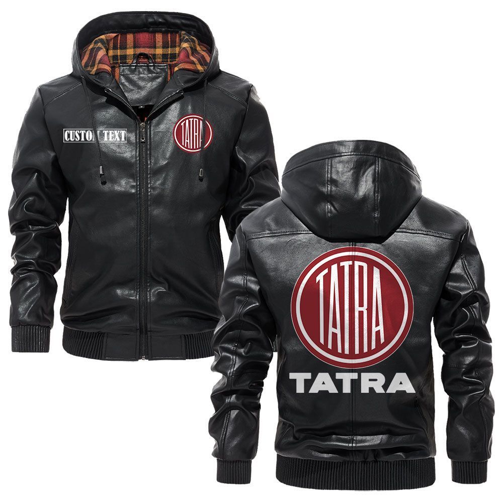 Tatra Logo Custom Name Leather Hoodie Jacket Comfortable Personalized Outerwear