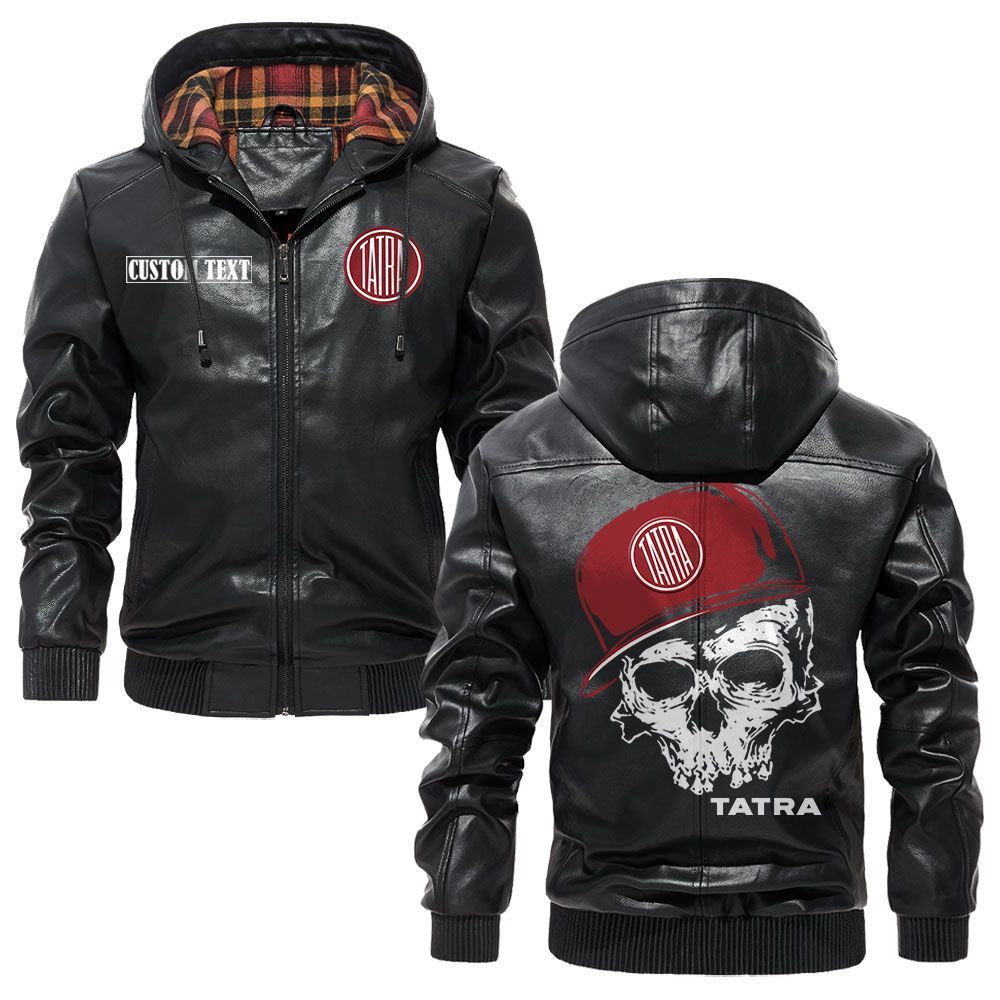 Tatra Logo Custom Name Leather Hoodie Jacket Warm Outerwear with Skull Design