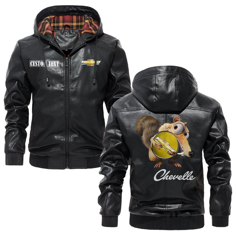 Chevrolet Chevelle Logo Custom Name Leather Hoodie Jacket Warm Outerwear with Ice Age Theme