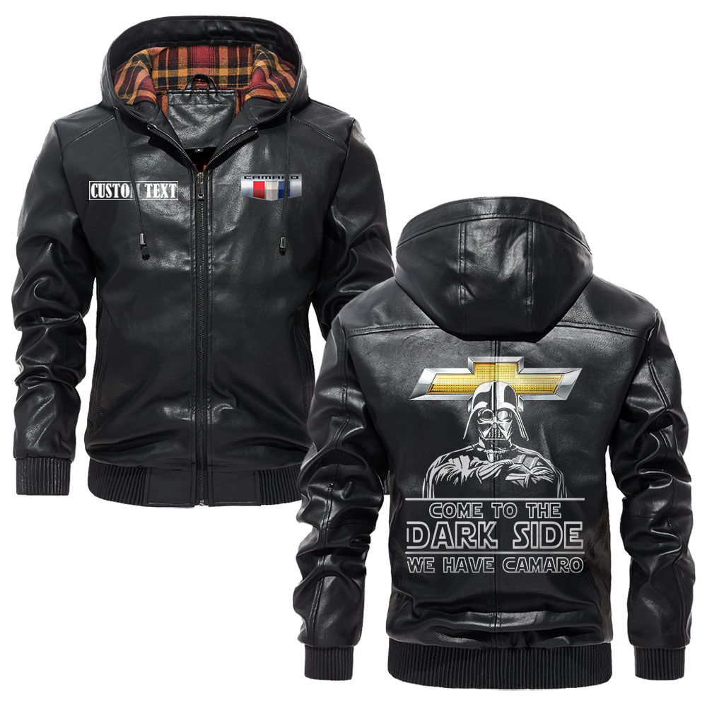 Chevrolet Camaro Logo Custom Name Leather Hoodie Jacket Warm Outerwear with Star Wars Theme