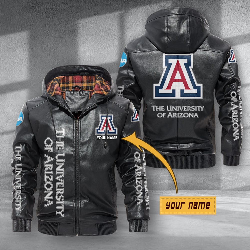 The University Of Arizona Leather Hoodie Jacket Football Leather Jacket
