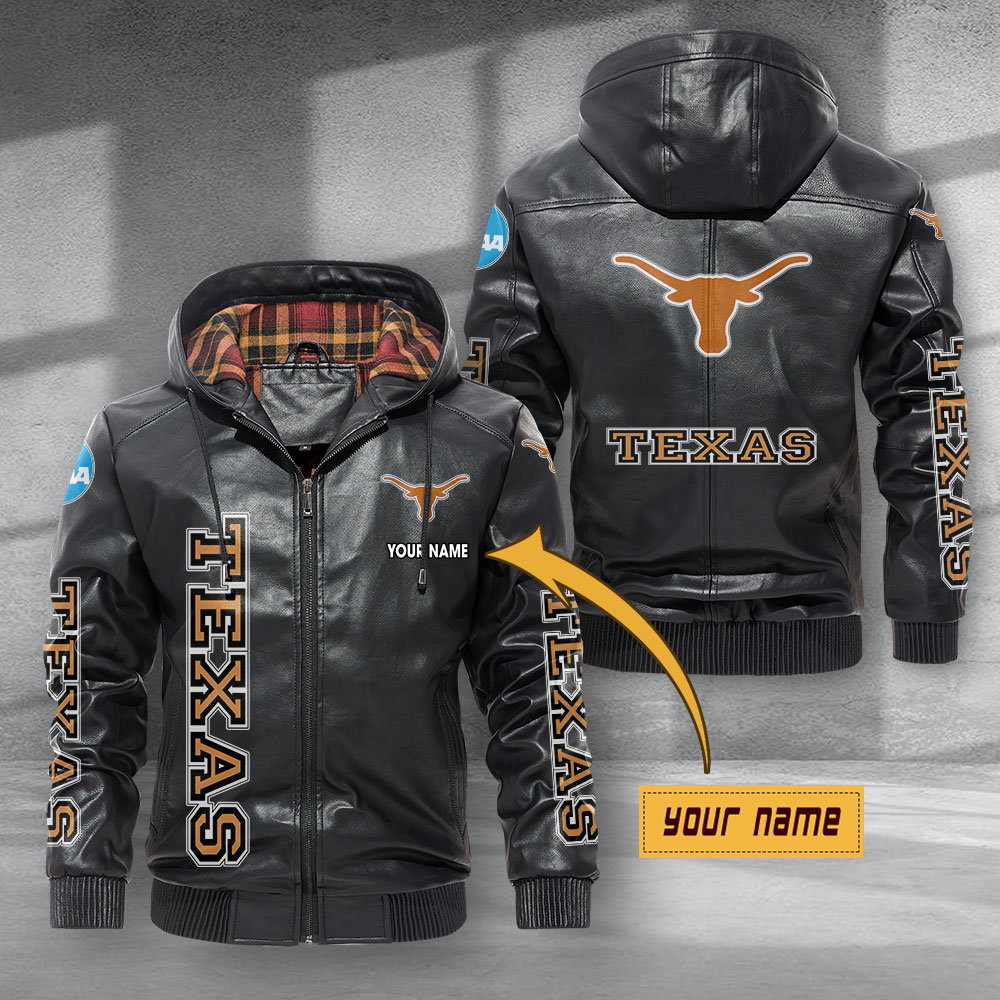 Texas Longhorns Leather Hoodie Jacket Football Leather Jacket