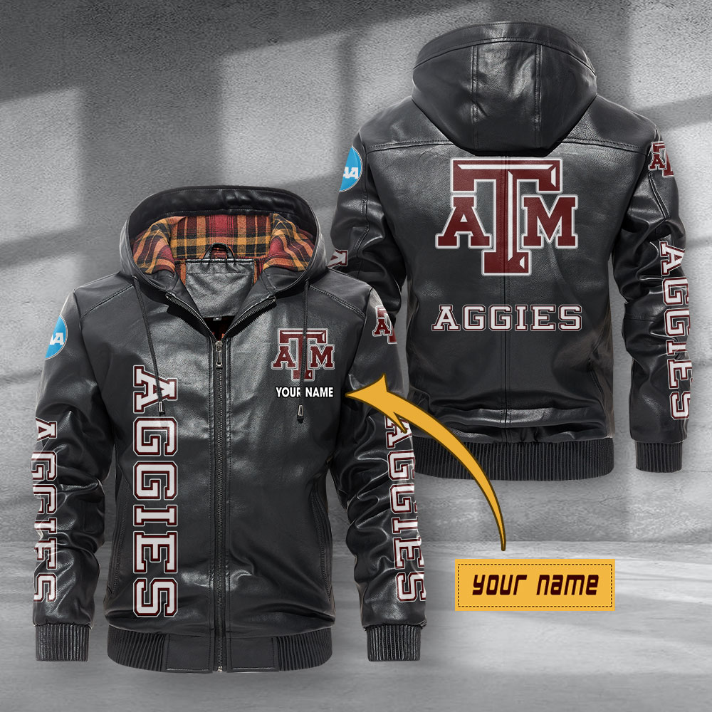 Texas A&M Aggies Leather Hoodie Jacket Football Leather Jacket