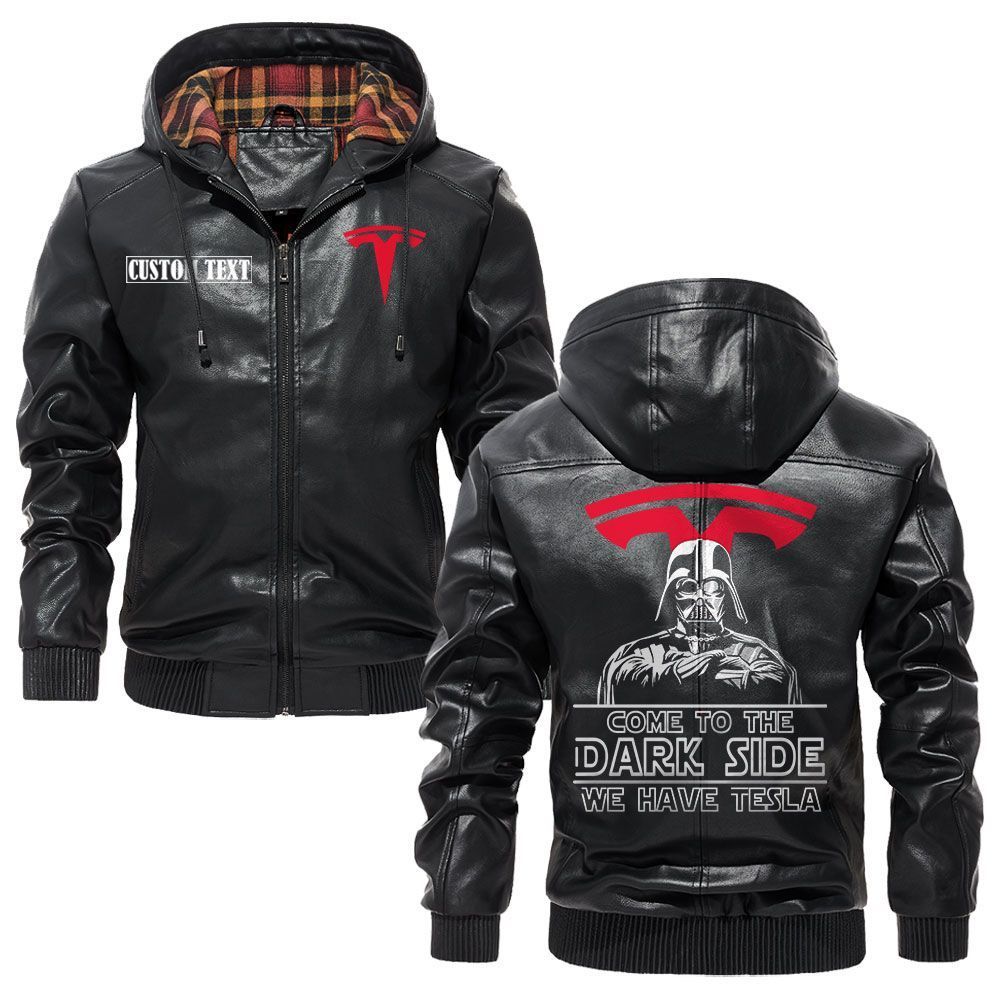 Tesla Motors Logo Custom Name Leather Hoodie Jacket Warm Outerwear with Star Wars Theme