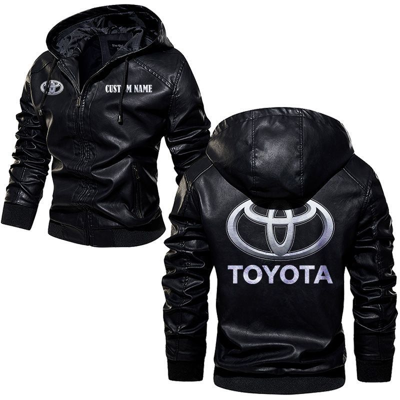 Toyota Motor Corporation Logo Custom Name Leather Hoodie Jacket A Real Man Who Loves