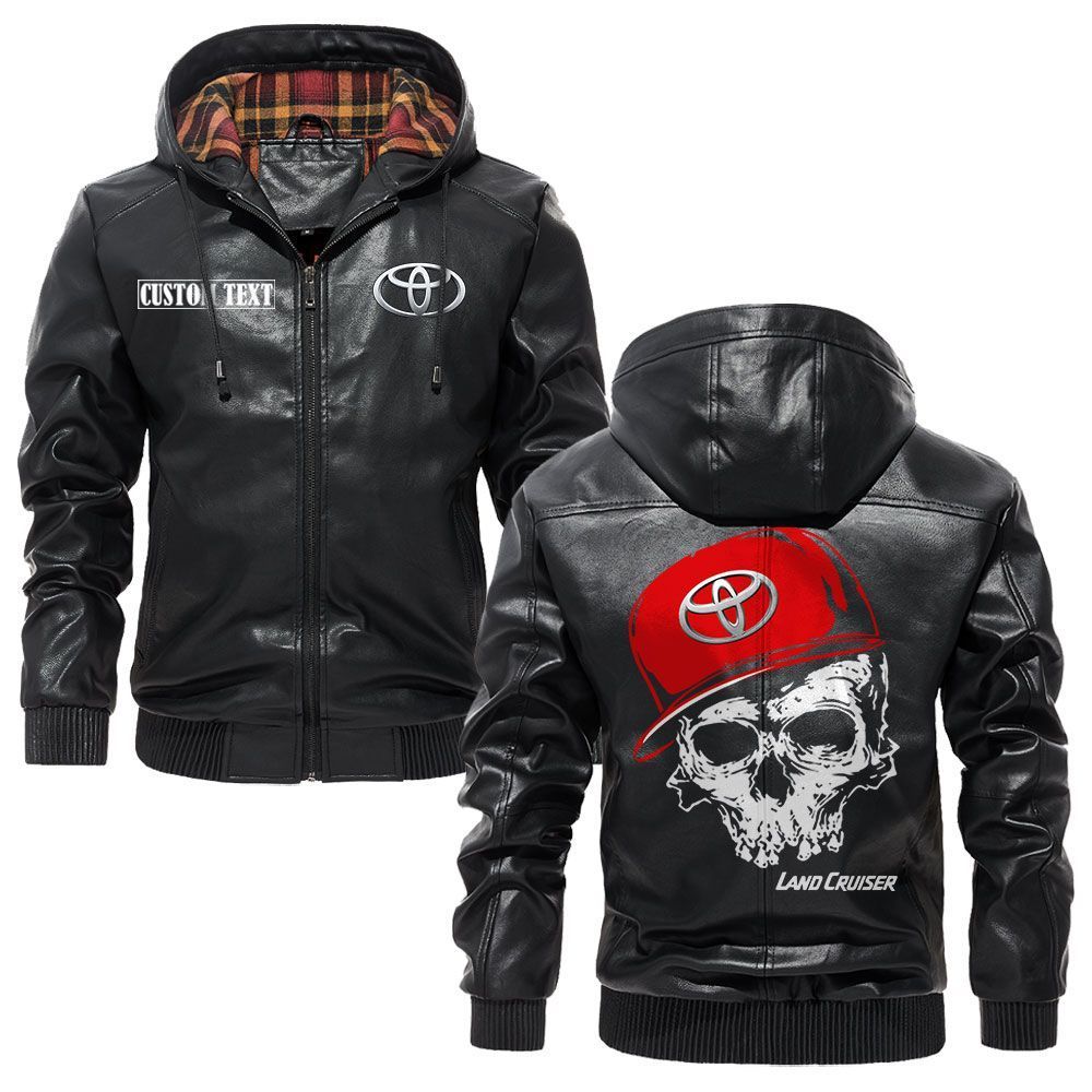 Toyota Land Cruiser Logo Custom Name Leather Hoodie Jacket Warm Outerwear with Skull Design