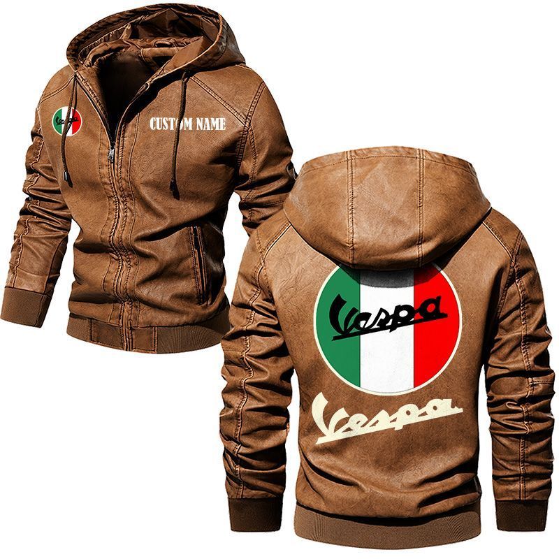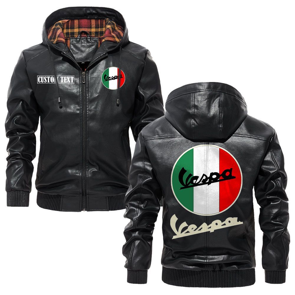 Vespa Logo Custom Name Leather Hoodie Jacket Comfortable Personalized Outerwear
