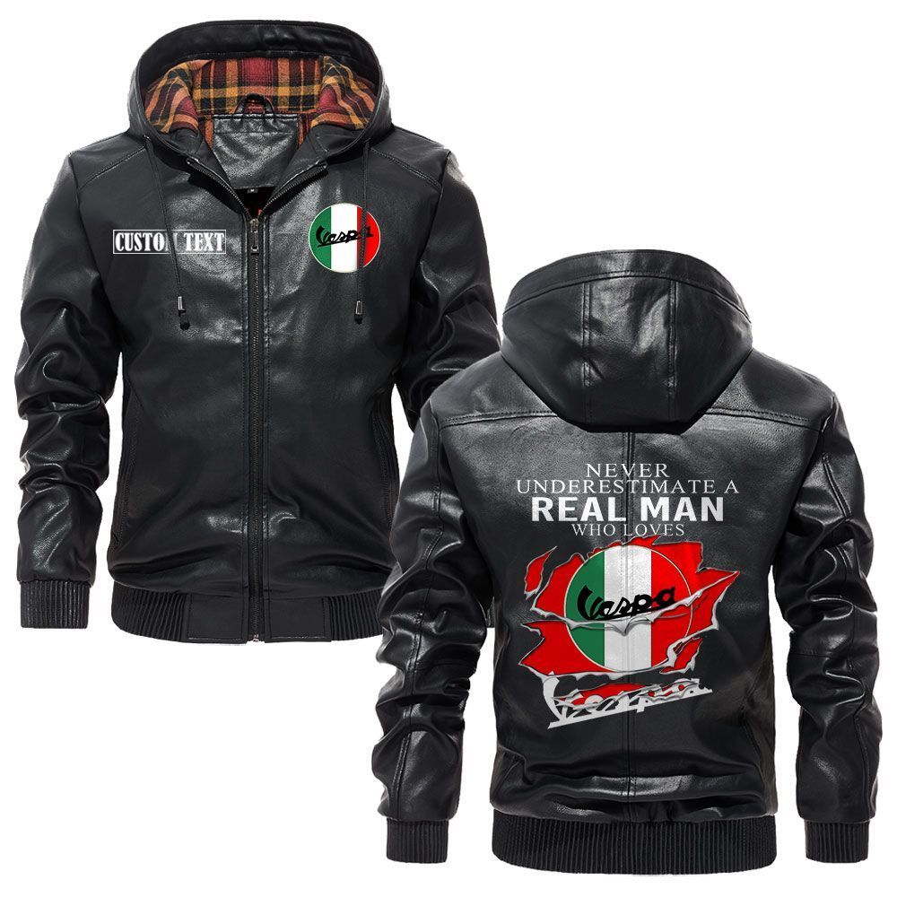 Vespa Logo Custom Name Leather Hoodie Jacket A Real Man Who Loves