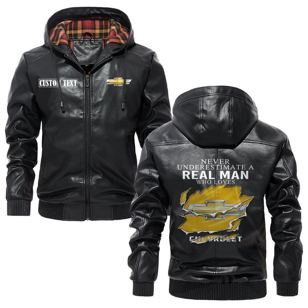 Chevrolet Logo Custom Name Leather Hoodie Jacket A Real Man Who Loves