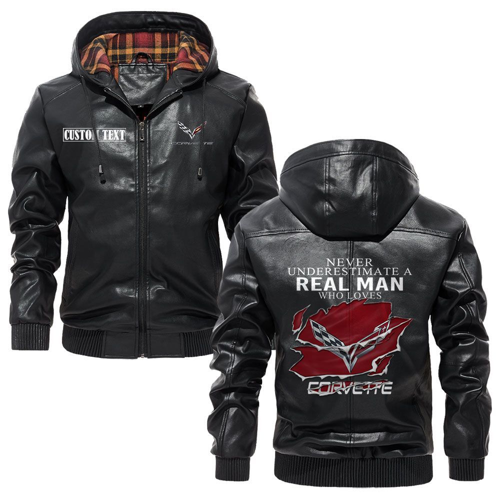 Chevrolet Corvette Logo Custom Name Leather Hoodie Jacket A Real Man Who Loves