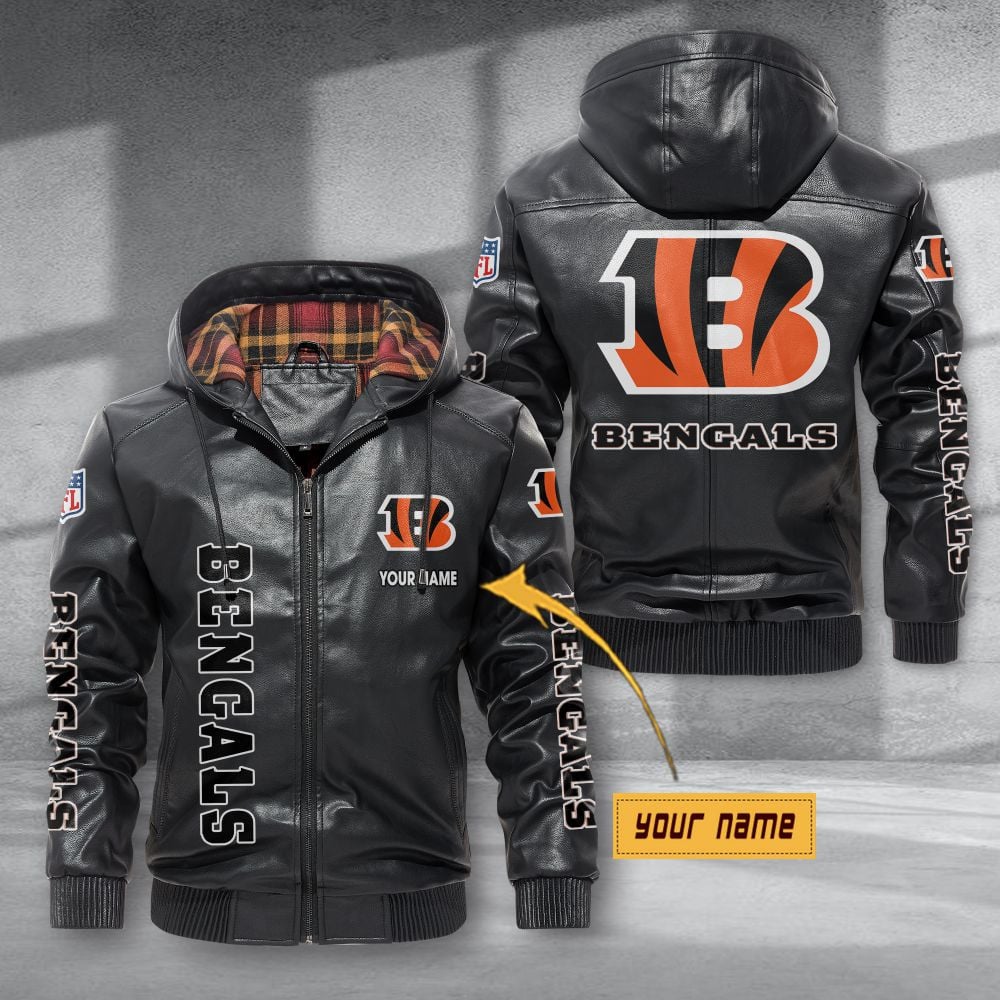 Cincinnati Bengals Leather Hoodie Jacket Football Leather Jacket