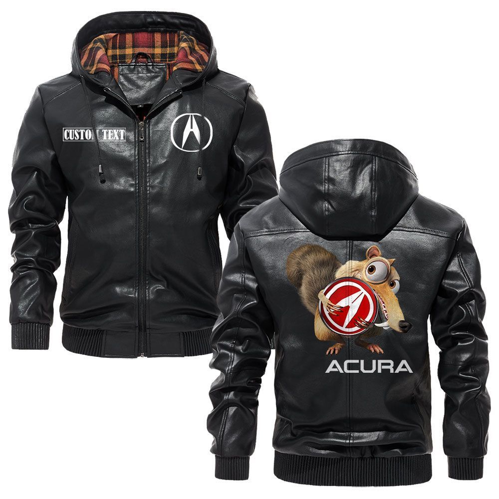 Acura Logo Custom Name Leather Hoodie Jacket Warm Outerwear with Ice Age Theme