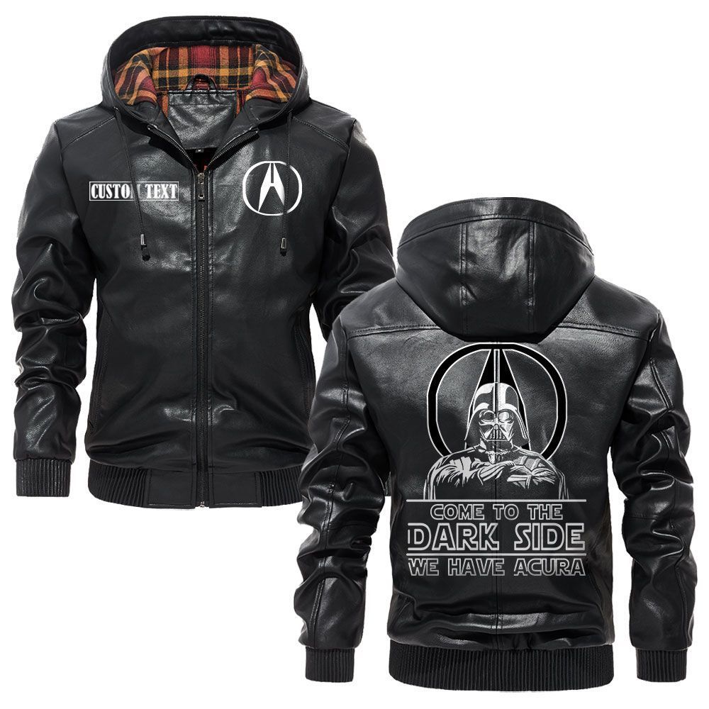 Acura Logo Custom Name Leather Hoodie Jacket Warm Outerwear with Star Wars Theme