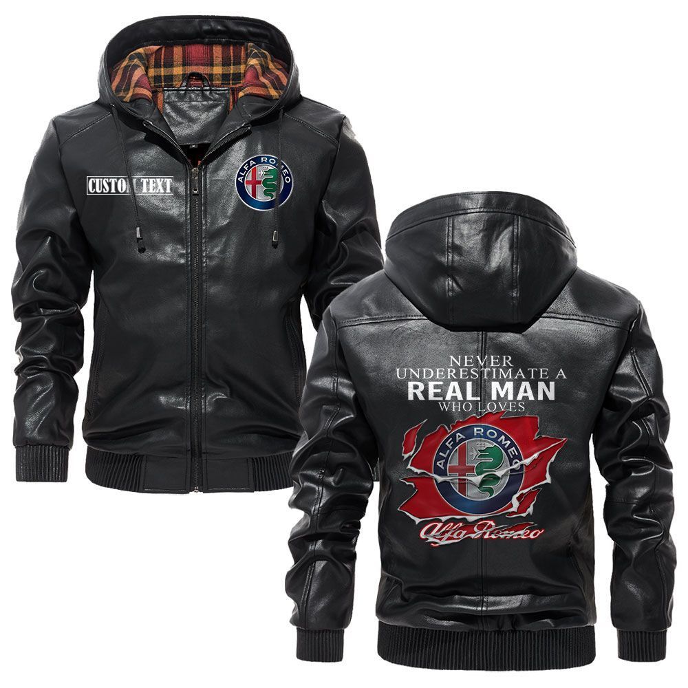 Alfa Romeo Logo Custom Name Leather Hoodie Jacket A Real Man Who Loves