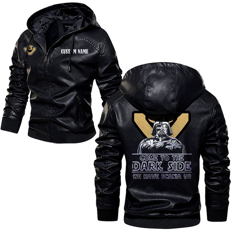 Come To The Dark Side Star War Scania V8 Leather Hoodie Jacket