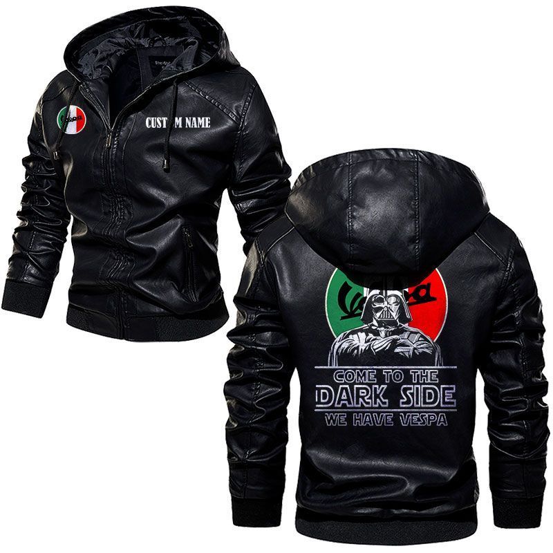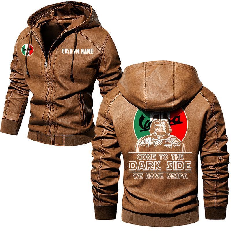 Come To The Dark Side Star War Vespa Leather Hoodie Jacket