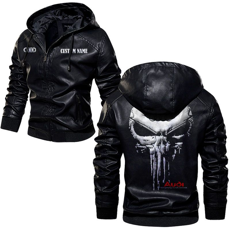 Custom Name Punisher Skull Audi-logo Leather Hoodie Jacket