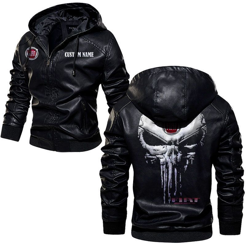 Custom Name Punisher Skull Fiat Leather Hoodie Jacket