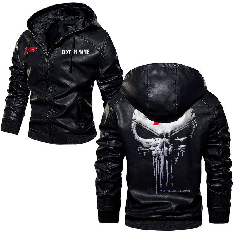 Custom Name Punisher Skull Ford Motor Company Leather Hoodie Jacket
