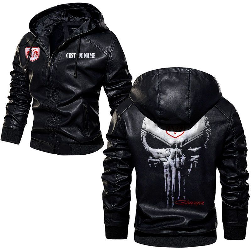 Custom Name Punisher Skull Dodge Charger Leather Hoodie Jacket