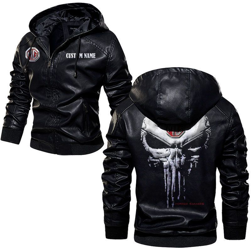 Custom Name Punisher Skull MG Cars Leather Hoodie Jacket