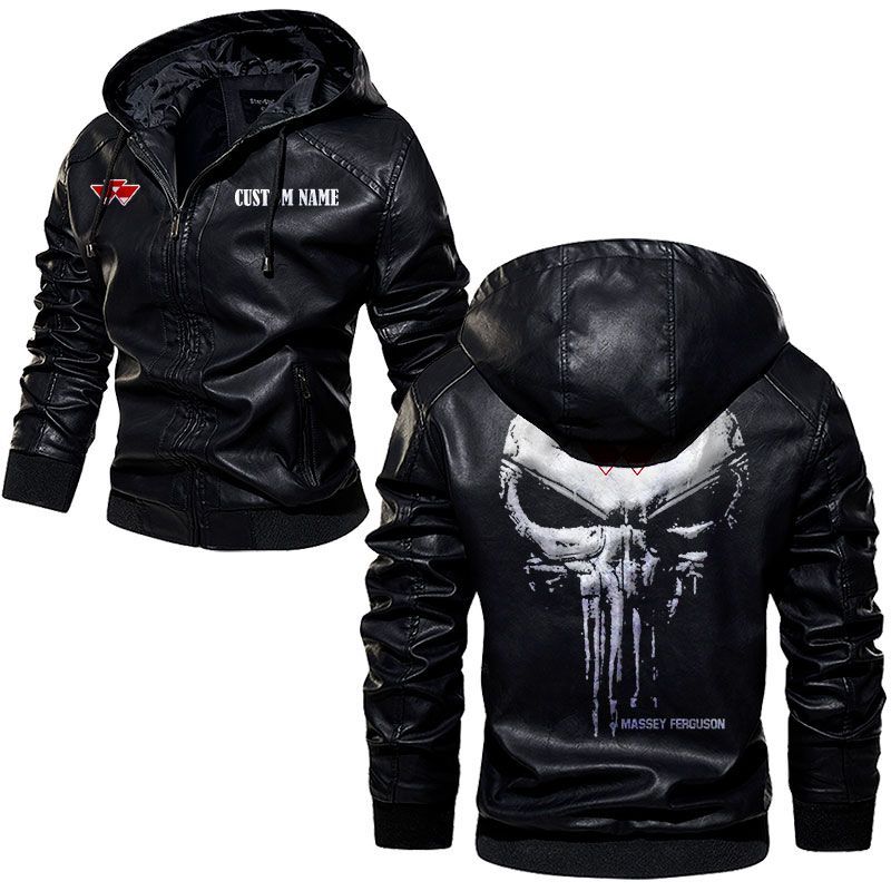 Custom Name Punisher Skull Massey Ferguson Leather Hoodie Jacket