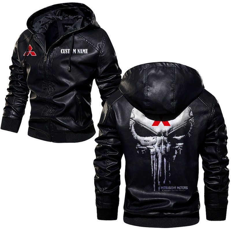Custom Name Punisher Skull Mitsubishi Leather Hoodie Jacket