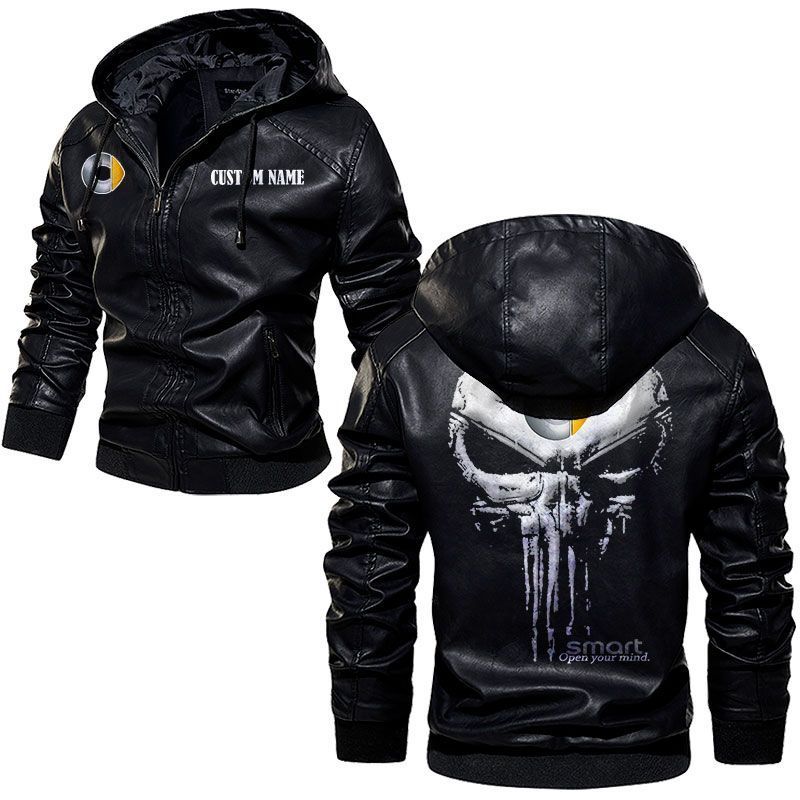 Custom Name Punisher Skull Smart Leather Hoodie Jacket