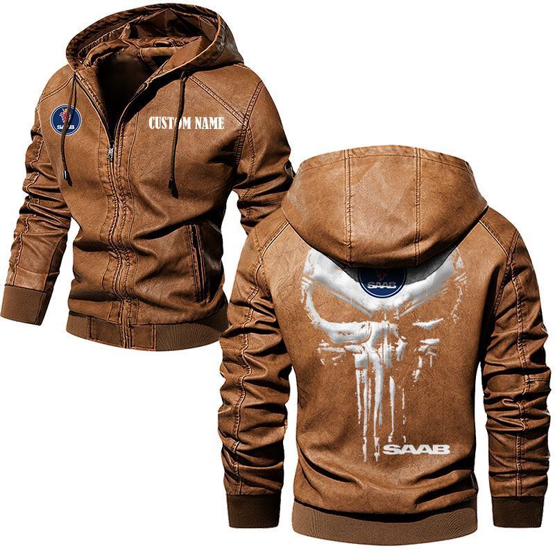 Custom Name Punisher Skull SAAB Leather Hoodie Jacket