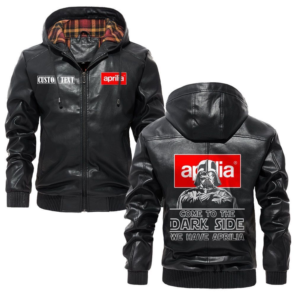 Aprilia Logo Custom Name Leather Hoodie Jacket Warm Outerwear with Star Wars Theme