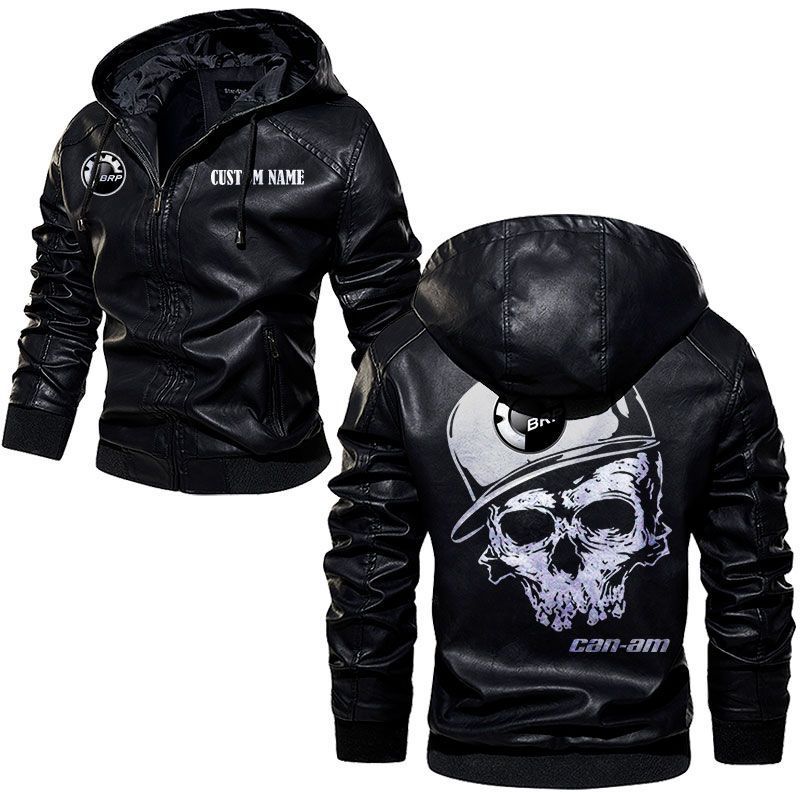 Custom Name Skull Design Can Am motorcycles Leather Hoodie Jacket