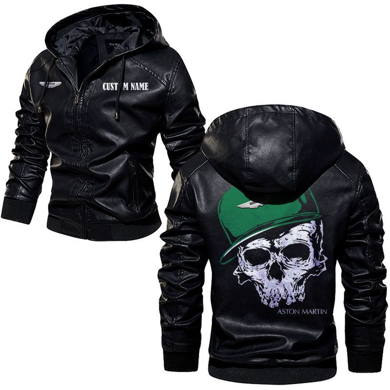 Custom Name Skull Design Aston Martin Leather Hoodie Jacket
