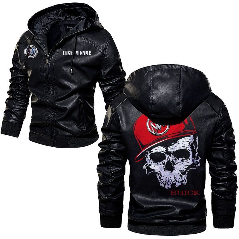 Custom Name Skull Design Buick Leather Hoodie Jacket