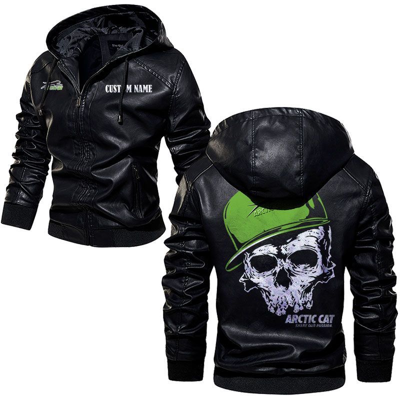 Custom Name Skull Design Arctic cat Leather Hoodie Jacket
