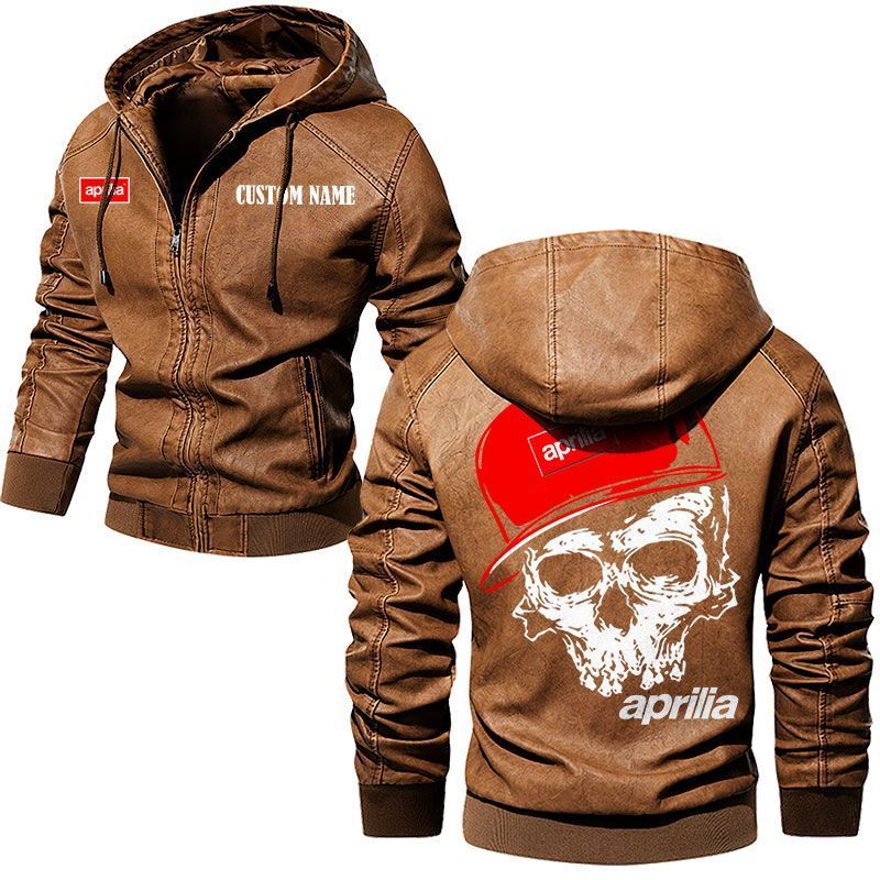 Custom Name Skull Design Aprilia Leather Hoodie Jacket