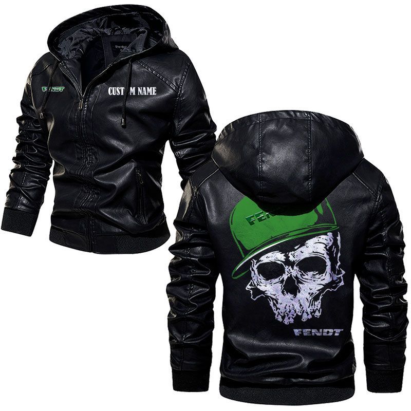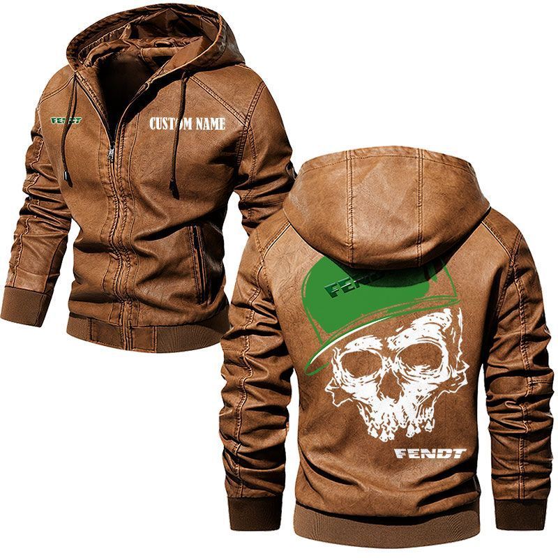Custom Name Skull Design Fendt Leather Hoodie Jacket