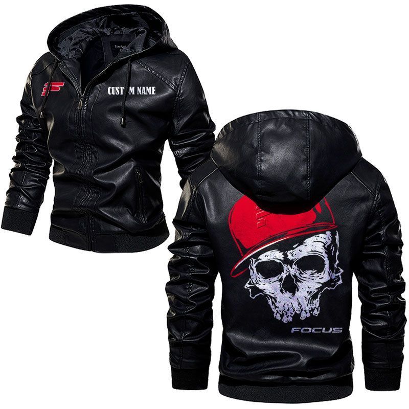 Custom Name Skull Design FOCUS Bikes Leather Hoodie Jacket