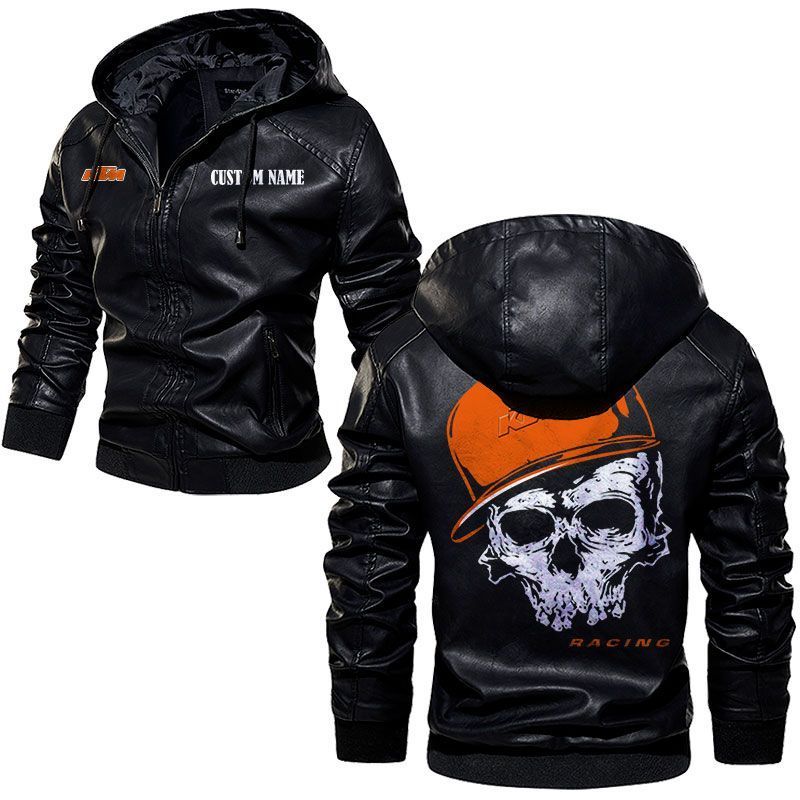 Custom Name Skull Design KTM Leather Hoodie Jacket