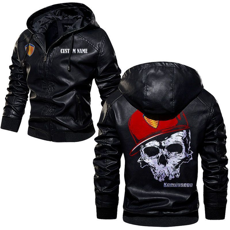 Custom Name Skull Design Koenigsegg Leather Hoodie Jacket